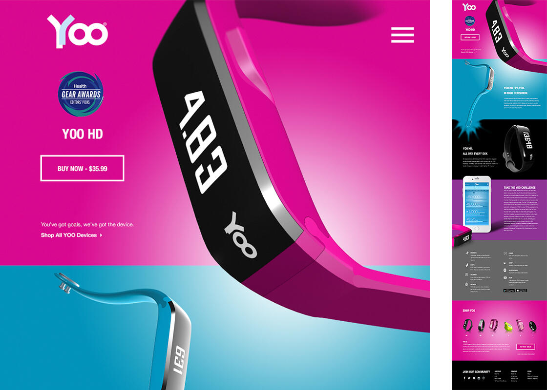 YOO HD was launched as a bold, lifestyle-driven fitness wearable designed to stand out in a saturated market by shifting the focus from technical performance to personal motivation and everyday usability. Instead of competing purely on specs, the brand positioned the device as a stylish, high-definition companion that empowers users to improve daily through simple tracking of steps, distance, calories, sleep, and activity, all displayed on a clear OLED screen with water resistance and long battery life. The website’s conversion-focused structure combines vibrant gradient visuals, oversized product imagery, confident typography, and emotionally engaging messaging—such as the “YOO Challenge”—to reframe the tracker as a tool for self-competition and consistency rather than hardcore athletic performance. Features are presented in clean, scannable sections supported by iconography, while early and repeated calls-to-action, social proof elements, and a $35.99 price point reinforce impulse purchase behavior. By blending energetic design, accessible pricing, and benefit-led storytelling, YOO HD successfully differentiates itself as a modern, motivational, and fashion-forward wearable that feels premium yet attainable, making it not just a fitness tracker, but a daily lifestyle enhancer.